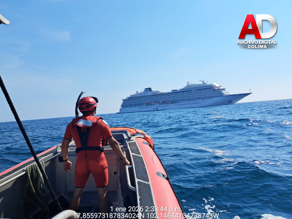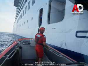 Lázaro Cárdenas, Michoacán. – La Secretaría de Marina a través de la Armada de México en funciones de Guardia Costera, por conducto de la Décima Sexta Zona Naval, informa que hoy personal perteneciente a la Estación Naval de Búsqueda, Rescate y Vigilancia Marítima (ENSAR) Lázaro Cárdenas, brindó apoyo para evacuar a una persona de un Crucero Turístico de nombre “Viking Sky”, frente a costas de Michoacán.