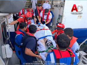 Lo anterior, se llevó a cabo después de recibir una llamada en la que se solicitaba apoyo para desembarcar a una paciente femenina de 76 años de edad de nacionalidad estadounidense, quien presentaba fractura en el fémur de pierna izquierda a consecuencia de una caída; por tal motivo, se ordenó el zarpe inmediato de una embarcación tipo Defender de la ENSAR Lázaro Cárdenas, con personal especializado y de Sanidad Naval a bordo, con el objetivo de salvaguardar la vida humana en la mar.