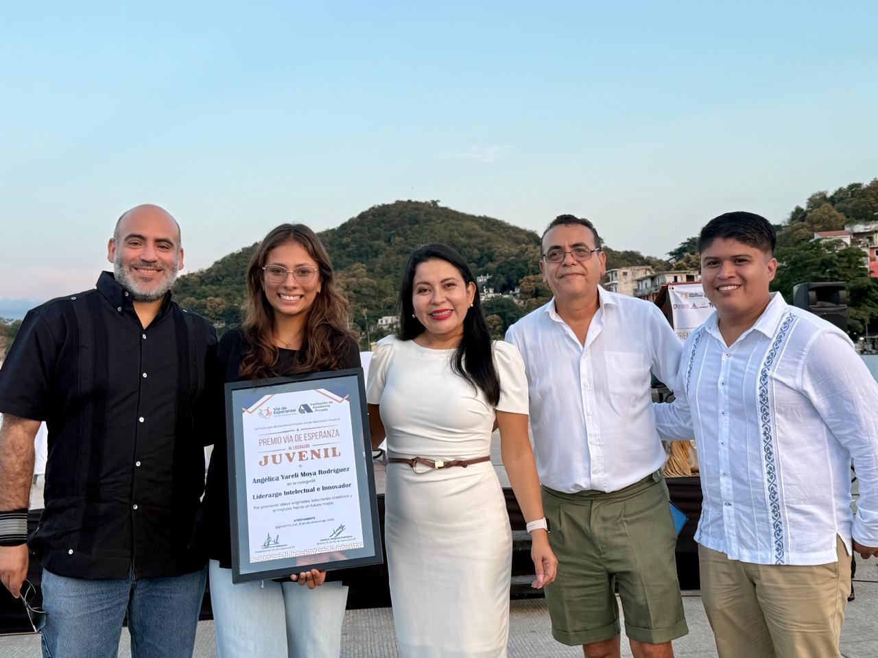 Finalmente, Ana María Gallardo participó en la entrega del premio Vía de Esperanza al Liderazgo Juvenil 2025, junto con César Cruz Velázquez, presidente de Vía de Esperanza I.A.P. En esta edición fueron reconocidas cinco personas ganadoras y tres menciones honoríficas, quienes recibieron incentivos económicos, apoyos en especie y acompañamiento para desarrollar o consolidar proyectos sociales.