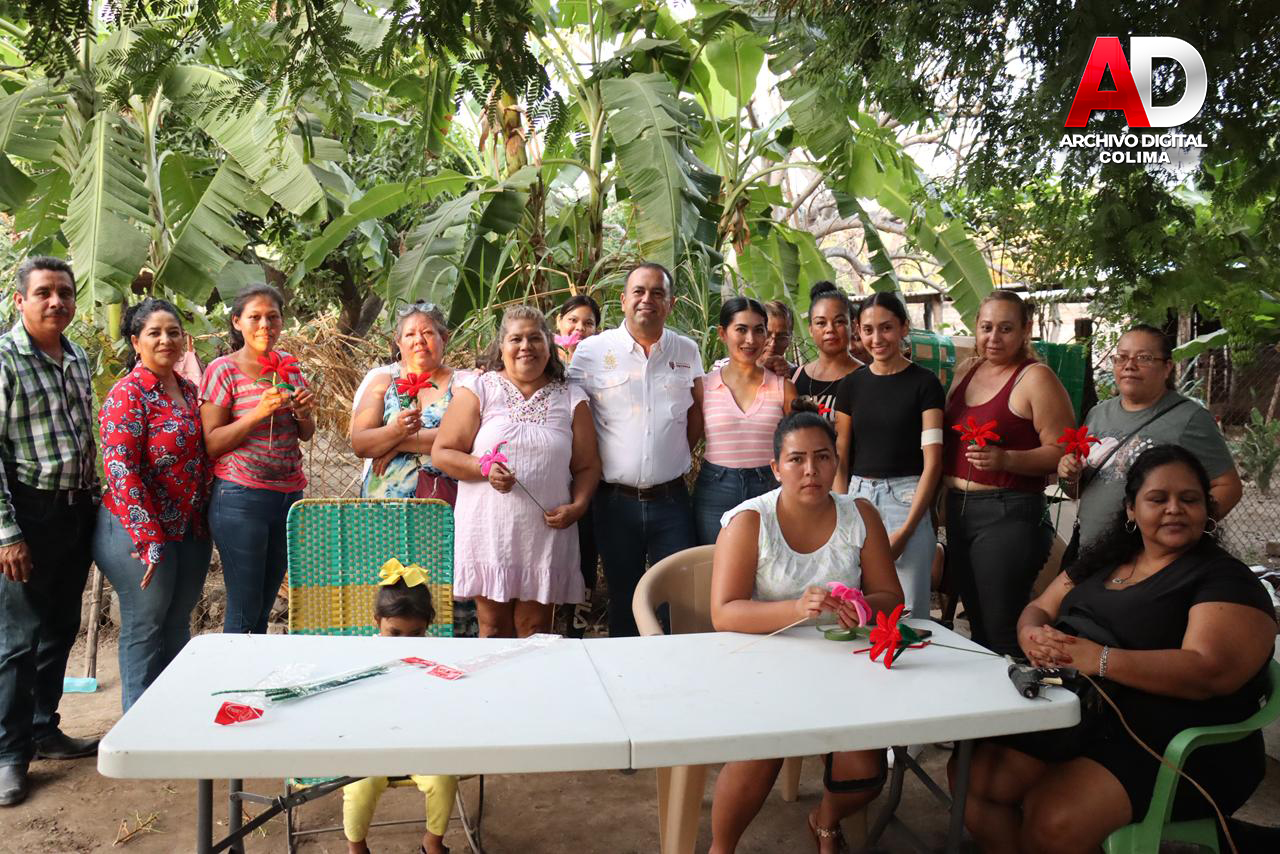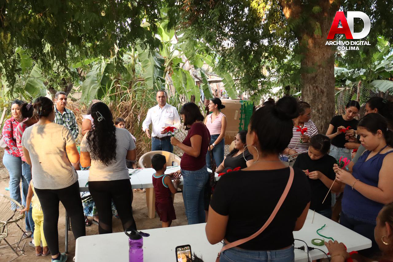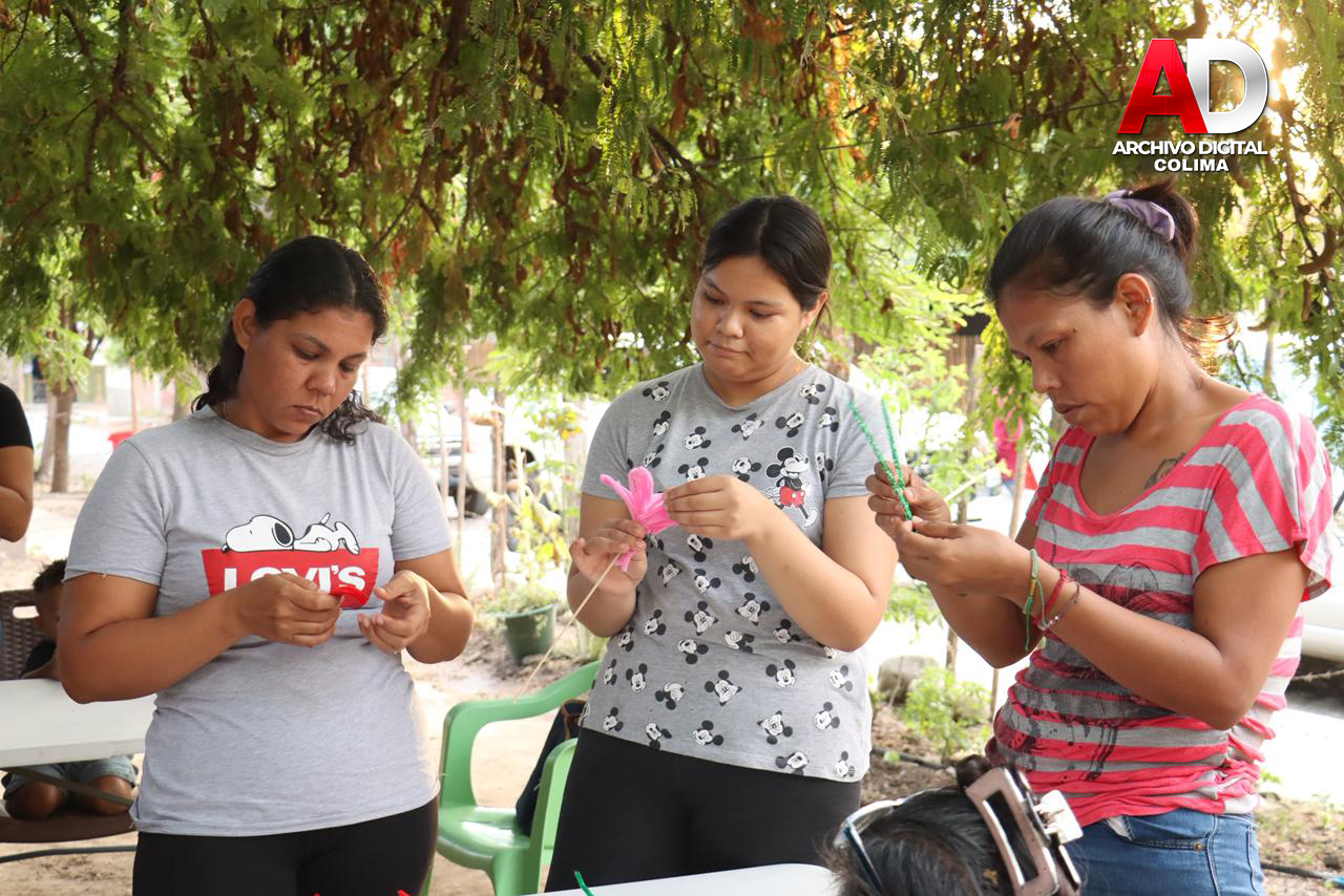 El día de ayer, el presidente municipal de Tecomán, Armando Reyna Magaña, estuvo presente en la comunidad de Madrid, donde acompañó a las mujeres que participaron en el taller de elaboración de flores con limpia pipas, organizado por la Dirección de la Mujer, a cargo de la directora Alexa Infante.