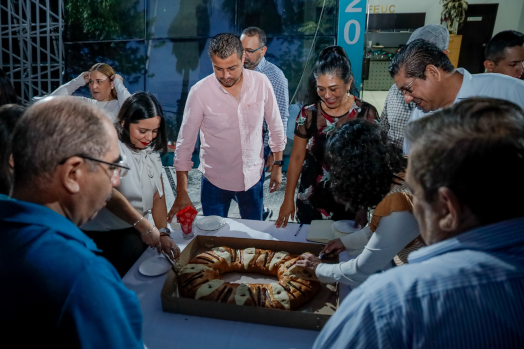 Con el fin de convivir, estrechar lazos de unidad y fortalecer el sentido de pertenencia a la comunidad universitaria, este fin de semana se llevó a cabo la tradicional partida de Rosca de Reyes en las instalaciones de la Federación de Egresados de la Universidad de Colima (FEUC), en un acto encabezado por el rector de la Universidad de Colima, Christian Jorge Torres Ortiz Zermeño y Carolina Venegas Ochoa, presidenta de esta Federación.
