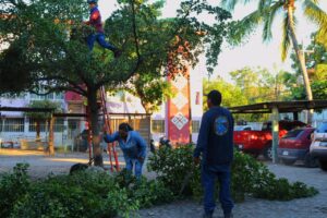Gobierno de Manzanillo realiza limpieza y poda en andadores del Barrio 1