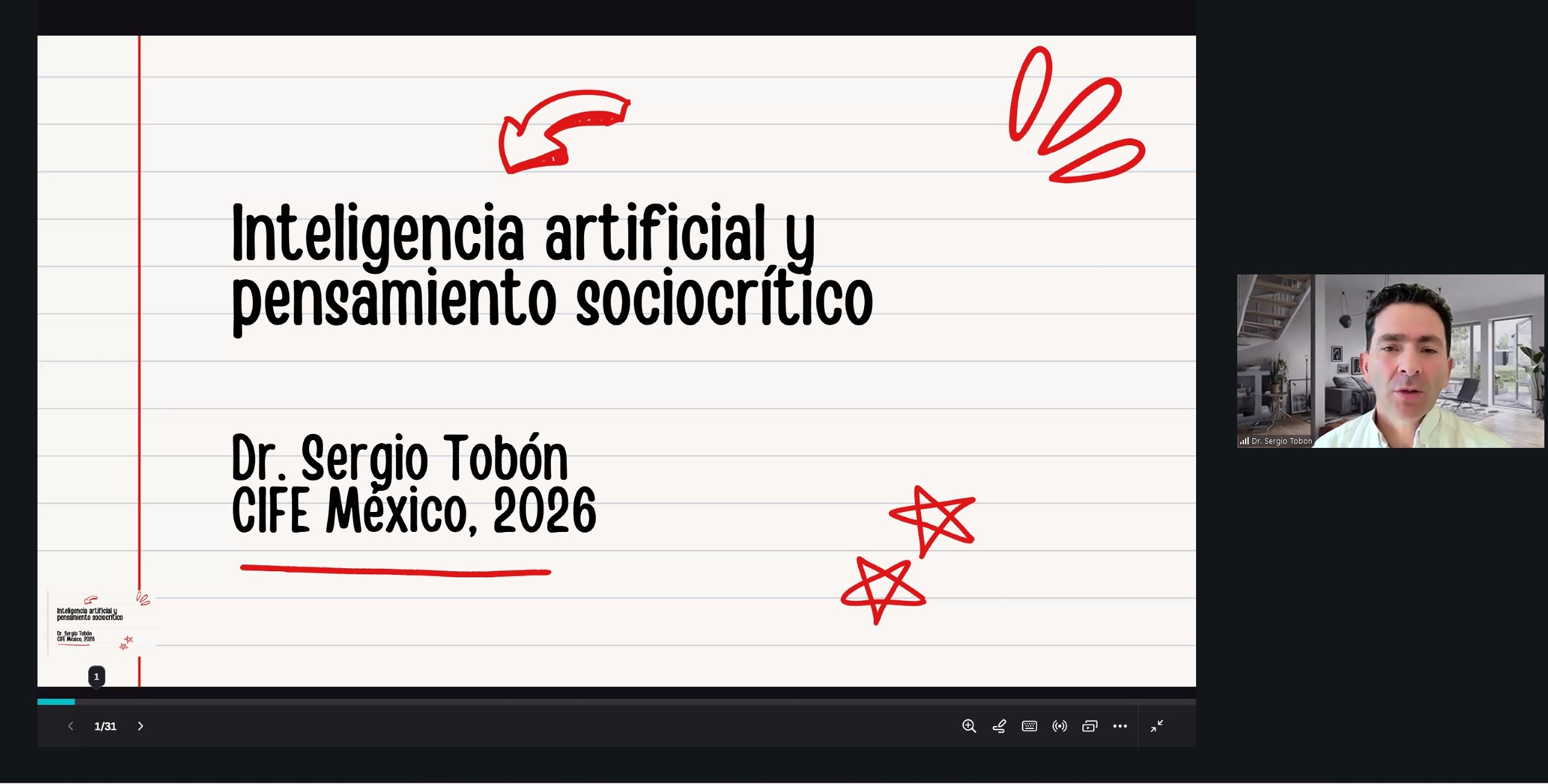 Como parte de las Jornadas Académicas 2026, este martes 20, de manera virtual, Sergio de Jesús Tobón-Tobón, especialista en modelos educativos y políticas culturales, dictó la conferencia “Pensamiento Sociocrítico e Inteligencia Artificial en el marco de la Nueva Escuela Mexicana”, en la que reflexionó sobre las actuales prácticas pedagógicas frente a la era de la Inteligencia Artificial (IA).