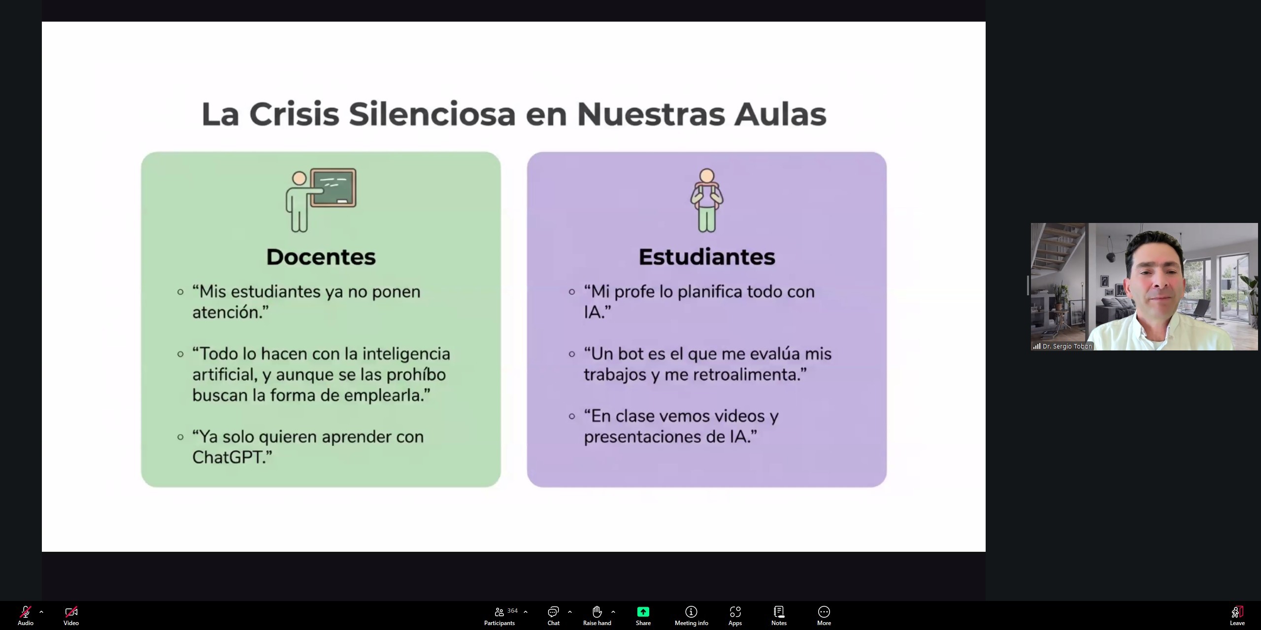 Dijo que la IA es ya una realidad, que se utiliza cada vez con mayor frecuencia en las planeaciones, en trabajos de investigación, “pero se está empleando de manera inadecuada, porque muchas veces el uso que le damos es para que nos reemplace”. Parece, comentó, que lo que ahora se busca es que el aprendizaje lo tengan los sistemas inteligentes; es decir; “se planea, se ejecuta y evalúa con IA y quien termina aprendiendo es la IA, más que el propio estudiante”.