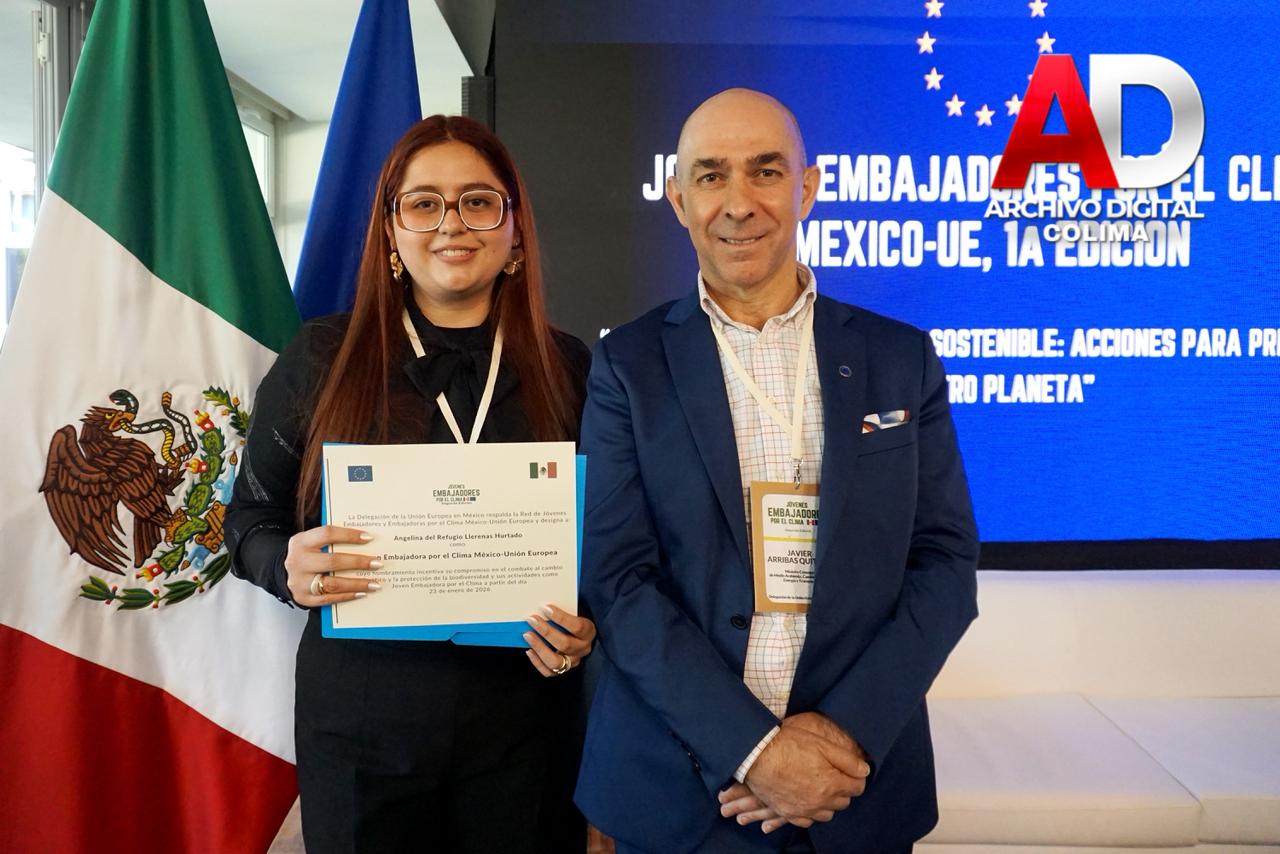 Angelina del Refugio Llerenas Hurtado participó recientemente en el evento Jóvenes Embajadores por el Clima México–Unión Europea, en su segunda edición, una iniciativa que promueve la participación activa de las juventudes en la acción climática y el fortalecimiento de la cooperación internacional. Como parte de este proceso, recibió oficialmente el nombramiento como Embajadora por el Clima de México ante la Unión Europea, integrándose a la Red de Jóvenes Embajadores por el Clima.
