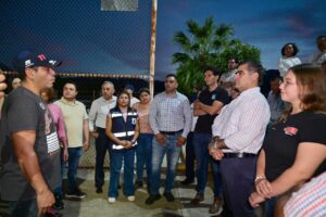 Asimismo, el alcalde visitó las instalaciones deportivas, donde dialogó con promotores deportivos y se comprometió a realizar mejoras en el alumbrado, así como a gestionar la construcción de un techo en las canchas de usos múltiples.