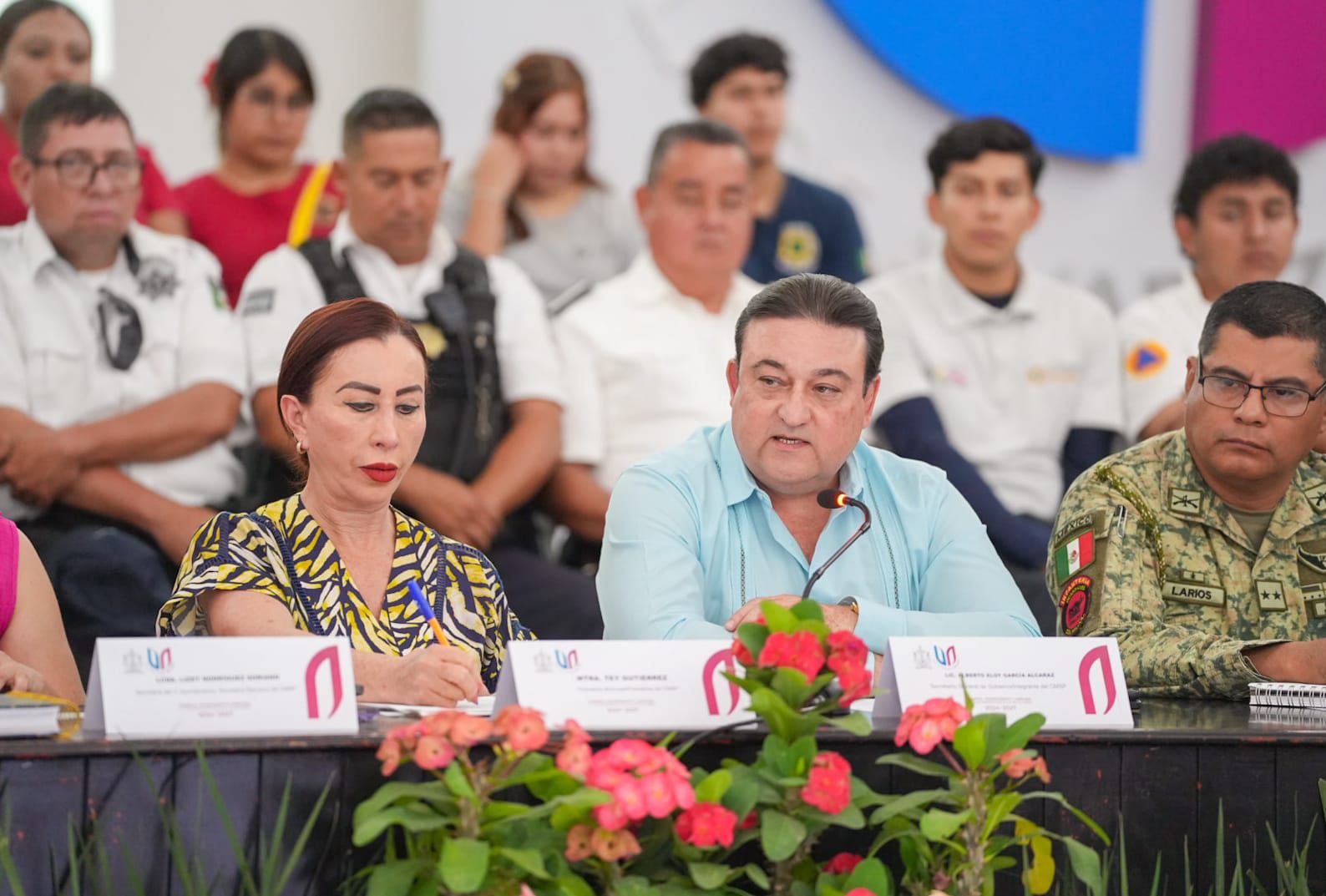 Durante la Décima Sesión Ordinaria del Consejo Municipal de Seguridad Pública, y acompañada por Eloy García Alcaraz, Secretario General de Gobierno, y por representantes de las fuerzas federales de seguridad, la Presidenta Tey Gutiérrez Andrade agradeció el respaldo de la Gobernadora Indira Vizcaíno Silva para que las Fiestas de la Villa estén resguardadas y sean muy seguras para los asistentes a las instalaciones de la feria y para quienes participan y observan en las calles las cabalgatas.