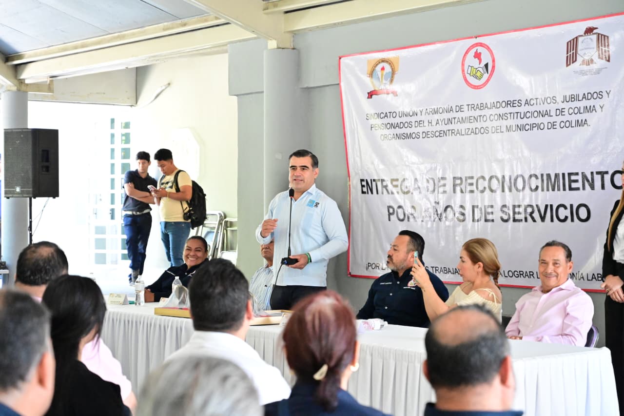 El alcalde capitalino afirmó lo anterior la mañana de este viernes durante el evento en donde hizo entrega de reconocimientos y estímulos de antigüedad a 29 trabajadores sindicalizados que cumplieron 10,15, 20, 25 y 30 años, del Sindicato Union y Armonía del Ayuntamiento de Colima.