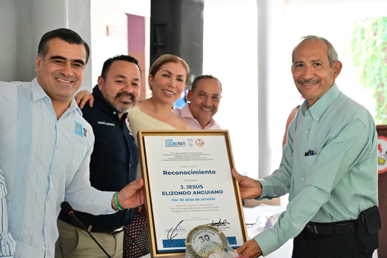 A su vez, José Luis Velázquez Sandoval, secretario General del Sindicato Union y Armonía del Ayuntamiento de Colima, manifestó que cada año de servicio que se reconoce representan madrugadas, jornadas largas, retos superados, sacrificios y sobre todo una profunda vocación de servir a Colima.