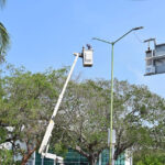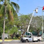 + Por indicaciones del presidente Riult Rivera, la cuadrilla de Alumbrado Público sustituyó luminarias de color azul/morado por luz blanca LED en la avenida Camino Real.