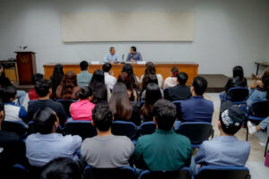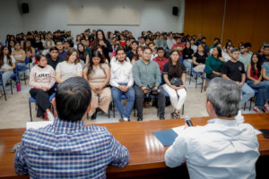 Acompañó al rector en presídium Jaime Alejandro Novela Castañeda, presidente de la Federación de Estudiantes Colimenses (FEC), quien agradeció a los jóvenes asistentes, así como la apertura al diálogo por parte del rector. “Valoramos mucho su presencia, pues con ello nos transmite la cercanía, preocupación y sobre todo su ocupación, con hechos, en los diversos temas que involucran a las y los estudiantes”.