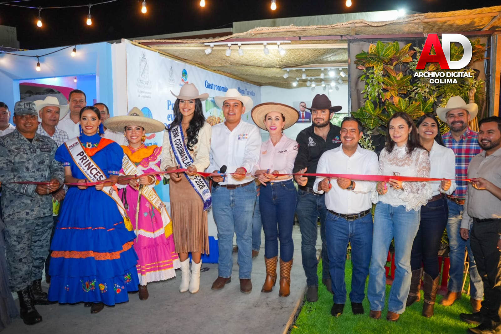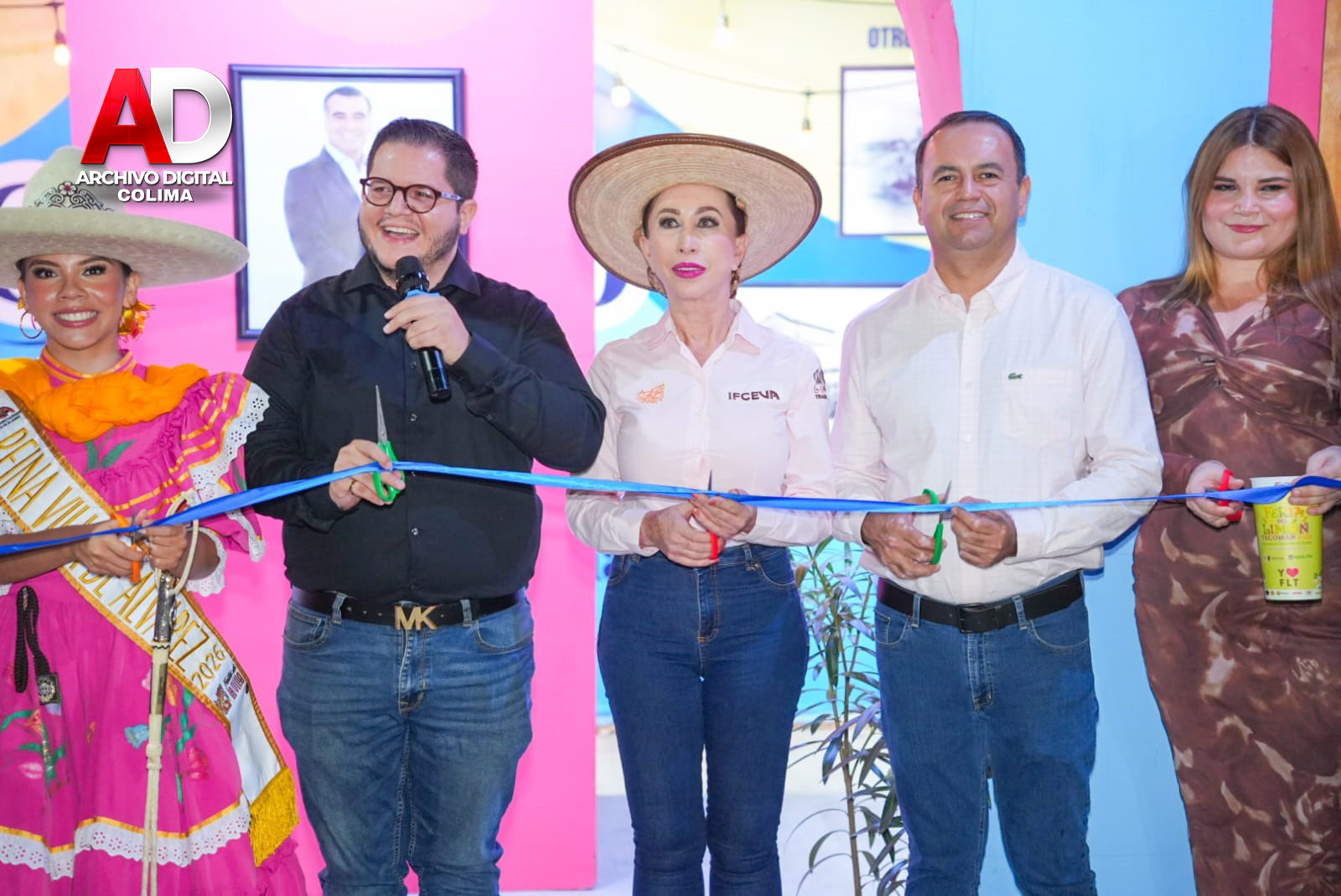 Villa de Álvarez, Colima.- La Presidenta Tey Gutiérrez Andrade inauguró, junto con alcaldes y representantes de algunos de ellos, el área de los stands de los municipios en el Recinto Ferial de los Festejos Charrotaurinos Villa de Álvarez 2026.