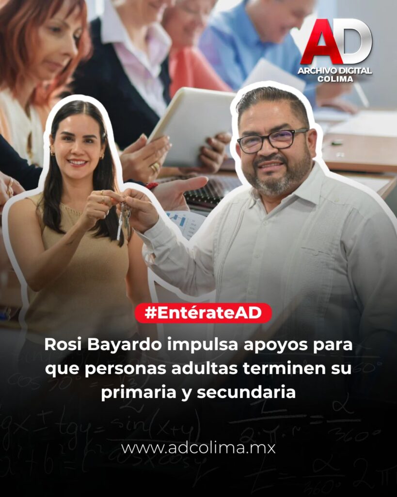 La presidenta municipal de Manzanillo, Rosa María Bayardo Cabrera, une esfuerzos con el Instituto Estatal de Educación para Adultos (IEEA), encabezado por Guillermo Toscano Reyes, con el objetivo de combatir el rezago educativo en el municipio mediante incentivos que motiven a las personas adultas a concluir su primaria y secundaria.
