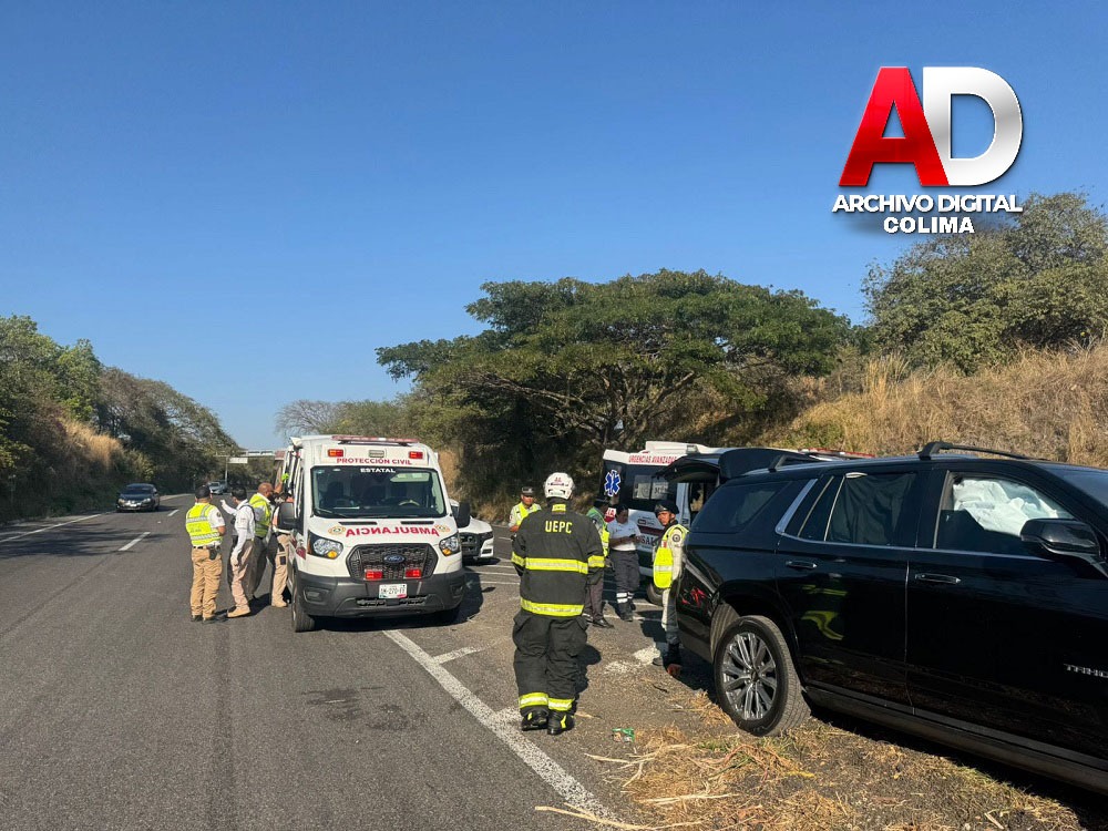 La Unidad Estatal de Protección Civil (UEPC) del Gobierno del Estado de Colima, en coordinación con la Guardia Nacional y el CRUM, atendió el accidente de una camioneta registrado sobre la carretera Guadalajara a Colima, antes de llegar a Colima.