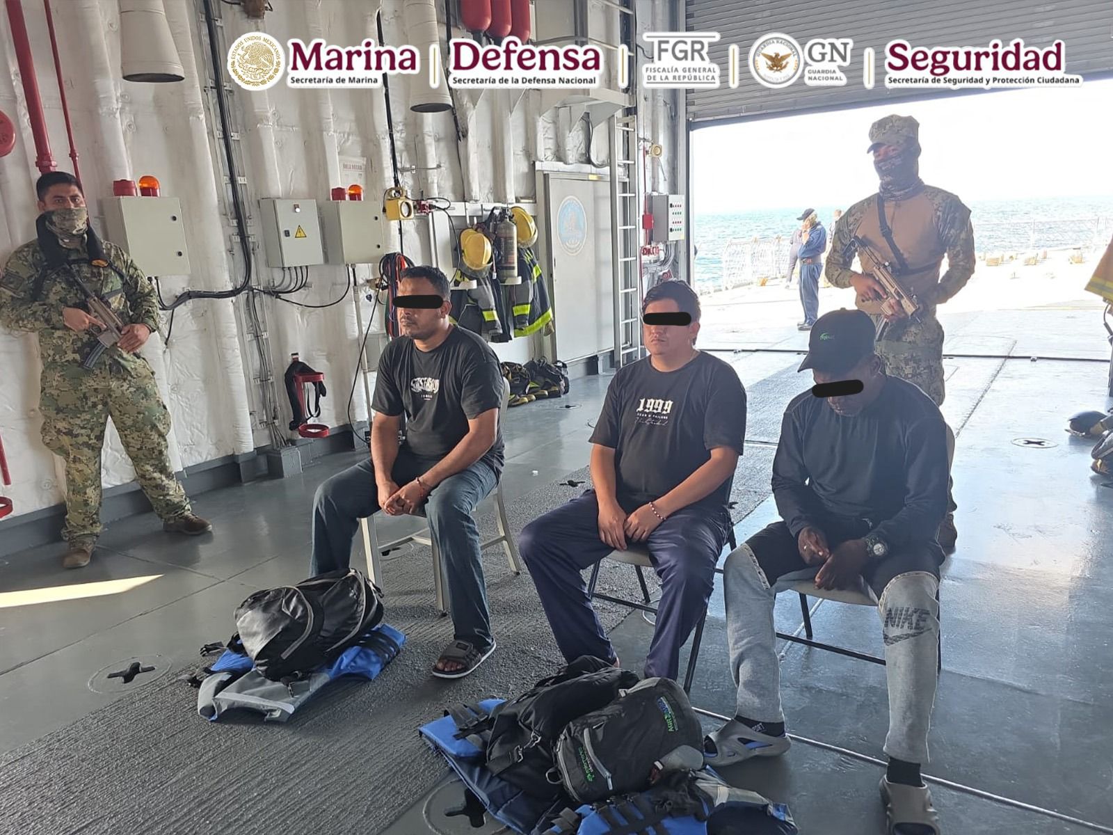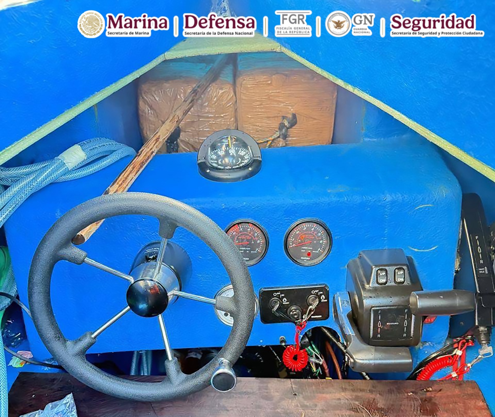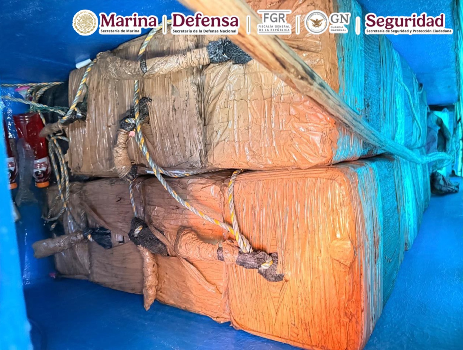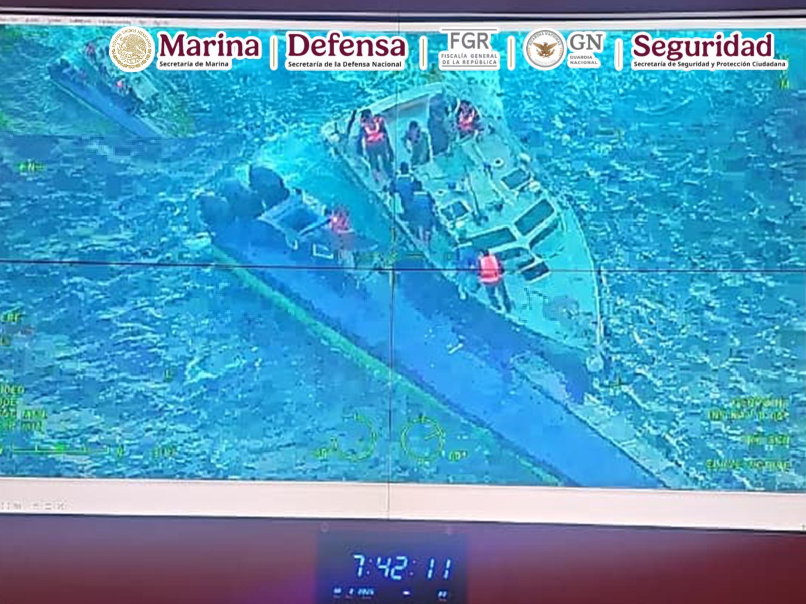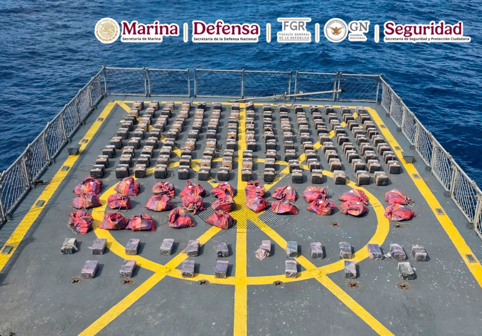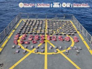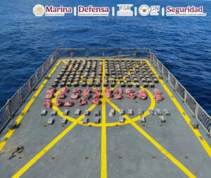 En una operación marítima encabezada por elementos de la Secretaría de Marina (Semar) a través de la Armada de México en funciones de Guardia Costera, en coordinación con la Secretaría de la Defensa Nacional (Defensa), Fiscalía General de la República (FGR), Guardia Nacional (GN) y Secretaría de Seguridad y Protección Ciudadana (SSPC), durante operaciones de vigilancia y seguridad marítima, se logró el aseguramiento de una Embarcación de Bajo Perfil (LPV por sus siglas en inglés) o semisumergible, con tres tripulantes y aproximadamente 179 bultos de distintas dimensiones que representan varias toneladas de posible cocaína, en espera de que las autoridades competentes determinen el peso ministerial, al momento de hacer su entrada a puerto.