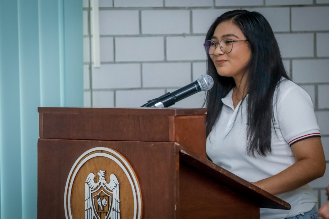 La alumna Tania Paola Villa Serratos dirigió un emotivo mensaje en nombre de sus compañeros y compañeras. “Éste es un acto académico que reconoce el esfuerzo, la constancia y el compromiso de cada estudiante que se presenta hoy en día. Esta certificación no representa solamente un documento, representa horas de aprendizaje, de práctica y perseverancia”.