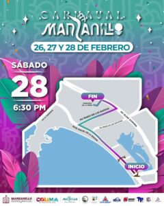 Hoy, sábado 28 de febrero, se llevará a cabo el recorrido del carnaval sobre el boulevard Miguel de la Madrid, iniciando a las 6:30 de la tarde, con un trayecto que irá desde la glorieta de Las Brisas hasta los terrenos de la feria.