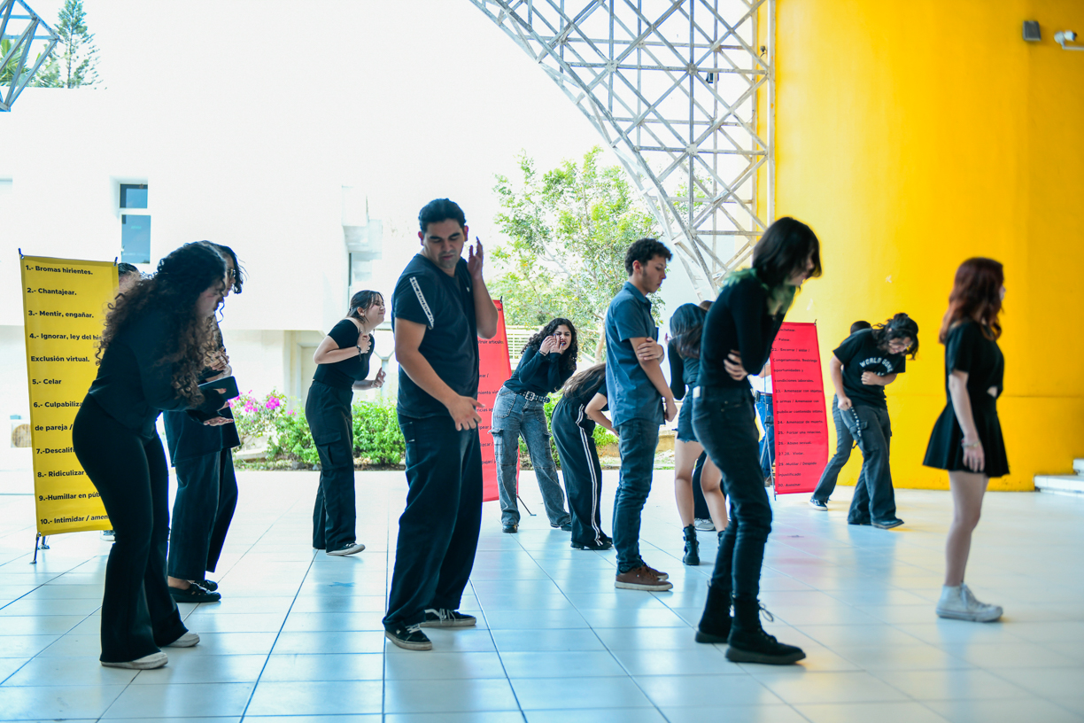 Dijo que la puesta en escena representa un violentómetro propio, construido por el grupo, que aborda las violencias presentes en el hogar, en las relaciones de amistad, en el trabajo y a través de los medios digitales. Aunque se trata de un ejercicio escénico sencillo y de corta duración, Carmen Solorio señaló que su intención fue lograr un impacto claro en el público. “Me interesaba que fuera un ejercicio breve, pero no por ello menos contundente”.