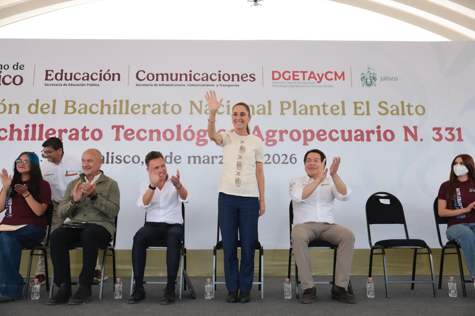El secretario de Educación Pública, Mario Delgado Carrillo, informó que este plantel del Bachillerato Nacional en El Salto abre sus puertas el lunes 16 de marzo. Agregó que en Jalisco hay 691 mil estudiantes que reciben las becas Benito Juárez en preparatoria, Rita Cetina en secundaria, Jóvenes Escribiendo el Futuro de universidad y anunció que este año se duplicarán con 640 mil niñas y niños de primaria que recibirán la Beca Rita Cetina para uniformes y útiles escolares.