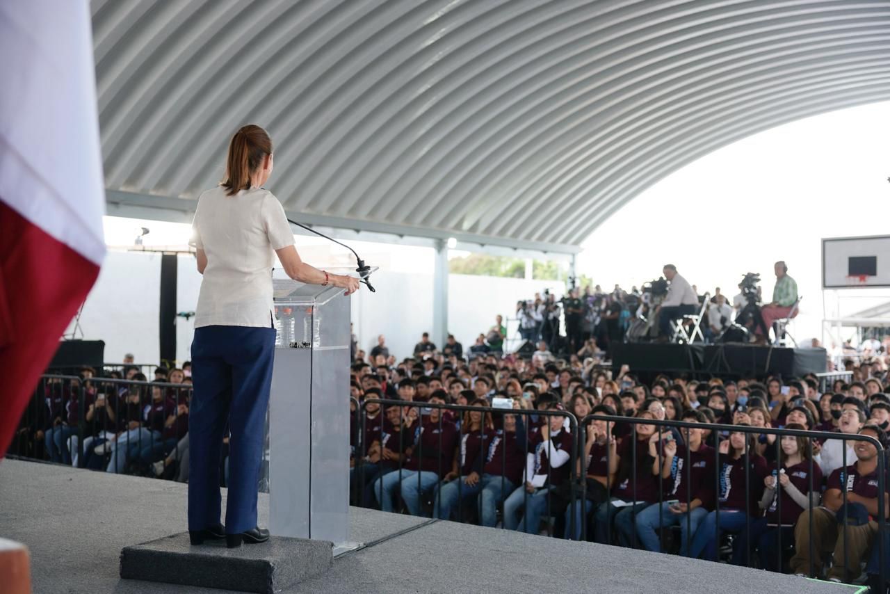 “Entonces, fíjense, iniciamos con una meta de 100 mil lugares en el país, y empezamos a construir las preparatorias: tecnológicos, ampliando tecnológicos y nuevas escuelas; y también, ahí donde hay secundaria, en la tarde preparatoria. ¿Y saben qué? Había espacio para 100 jóvenes y se inscribían 200; abríamos un espacio para 200 y se inscribían 400. Y le dije a Mario y a Tania: hay que aumentar el número de prepas. Entonces, lo aumentamos a 125 mil lugares en el país y se seguían inscribiendo más y más. Bueno, este año ya subimos la meta a 200 mil lugares en todo el país para los jóvenes mexicanos”, informó.