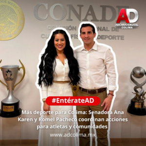 “Estamos construyendo con Rommel y con la Conade una coordinación sólida para impulsar el deporte en Colima, para generar más oportunidades para nuestras y nuestros atletas, y también para fortalecer la infraestructura deportiva y acercar el deporte a más comunidades”, expresó la senadora.